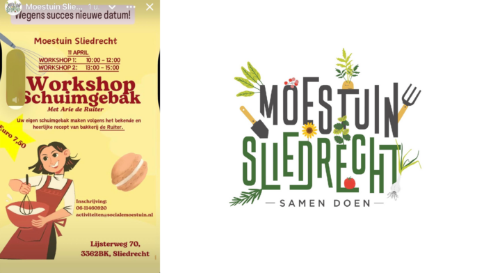 Inschrijving: 06-11460920. Of per email: activiteiten@socialemoestuin.nl. Kosten: €7,50. U vind de moestuin aan de Lijstweg 70 in Sliedrecht.