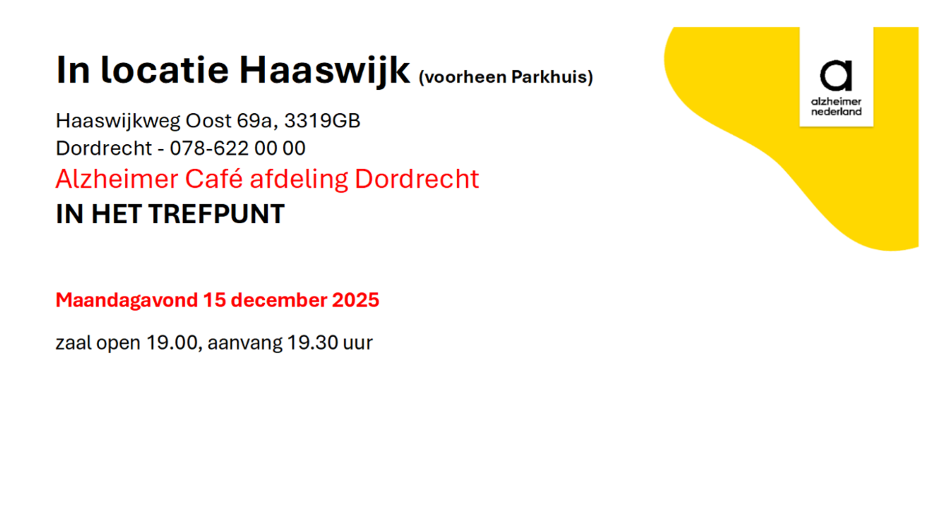Het volgende Alzheimer Café is op 19 januari 2026.