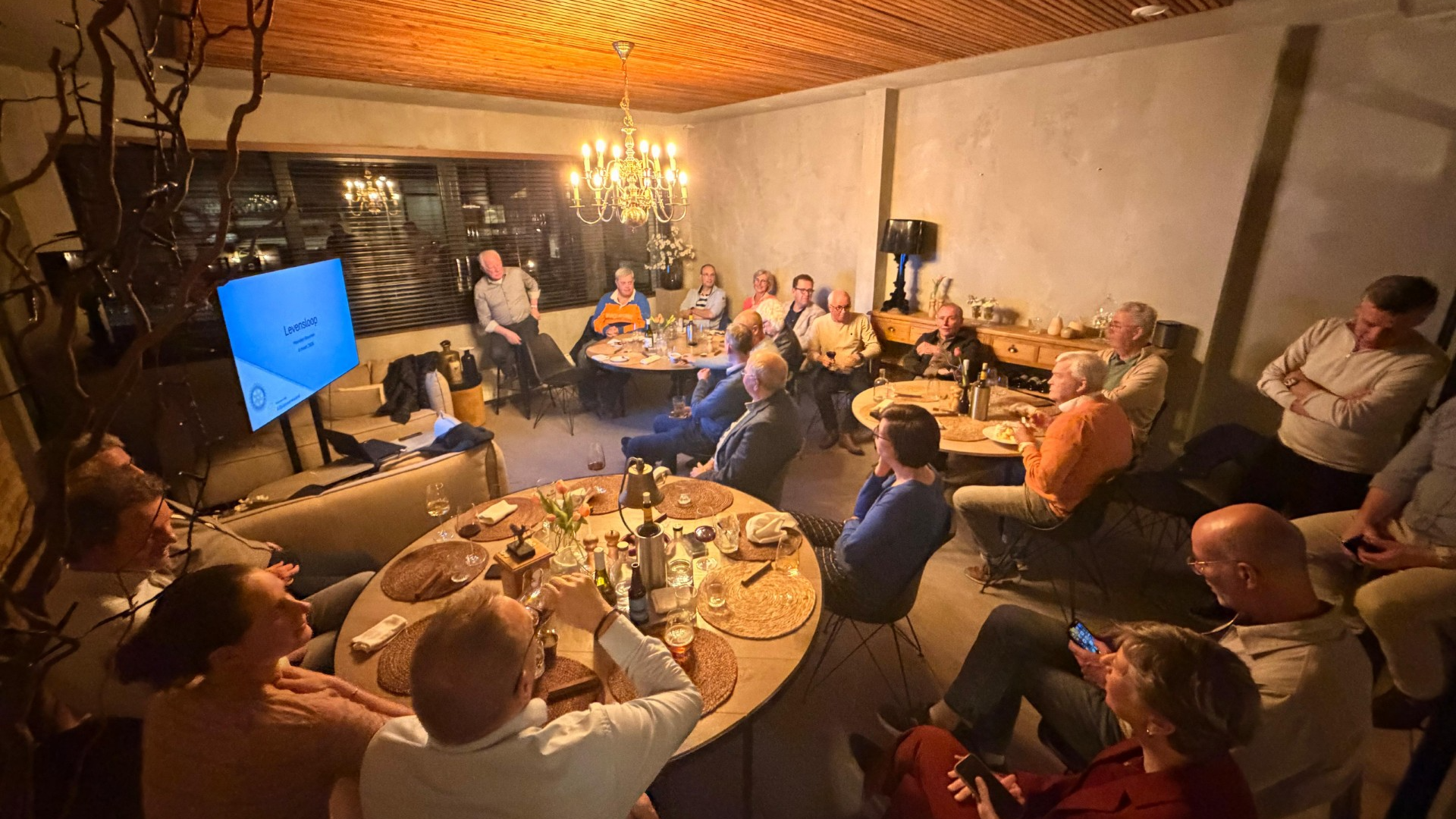 ‘Dit soort bijeenkomsten organiseren we wekelijks’, vervolgt Addink. ‘Ontmoeting, afstemming en inspiratie opdoen staan daarbij voor ons centraal, maar de Rotary is nog zo veel meer dan dat. De leden van Rotary Alblasserwaard maken onderdeel uit van een wereldwijd netwerk van mensen die graag iets terug willen doen voor de samenleving vanuit hun professie, kennis, ervaring of betrokkenheid daarbij. Zo organiseren we fundraisers als bijvoorbeeld de Alblasserwaardse Haring Paling Party. Daarmee financieren we initiatieven als onze oranje Alblasserwaardse Wensboom, waarmee we jaarlijks vele tientallen wensen van mensen uit de regio in vervulling laten gaan’.