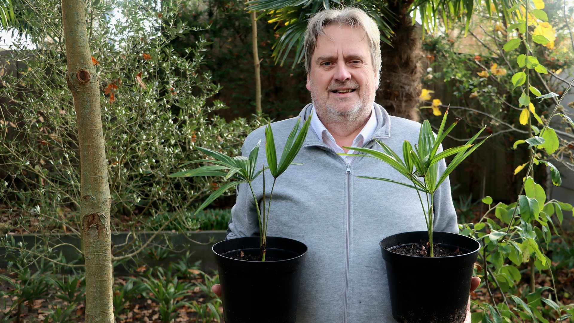 De klimaatsverandering draagt ertoe bij dat je de Trachycarpus Fortunei steeds vaker ziet. Donk: ‘De palmboom blijft zomer en winter groen, geeft geen afval van bladeren en draagt bij aan de biodiversiteit. De palm is al lang geen exoot meer, maar steeds meer een ‘inheemse’ boom. Ik verwacht dat het aantal winterharde palmbomen de komende jaren toeneemt. De boom geeft gezelligheid voor de één en een vakantiegevoel voor de ander. Palmjes.NL wil daaraan bijdragen’.