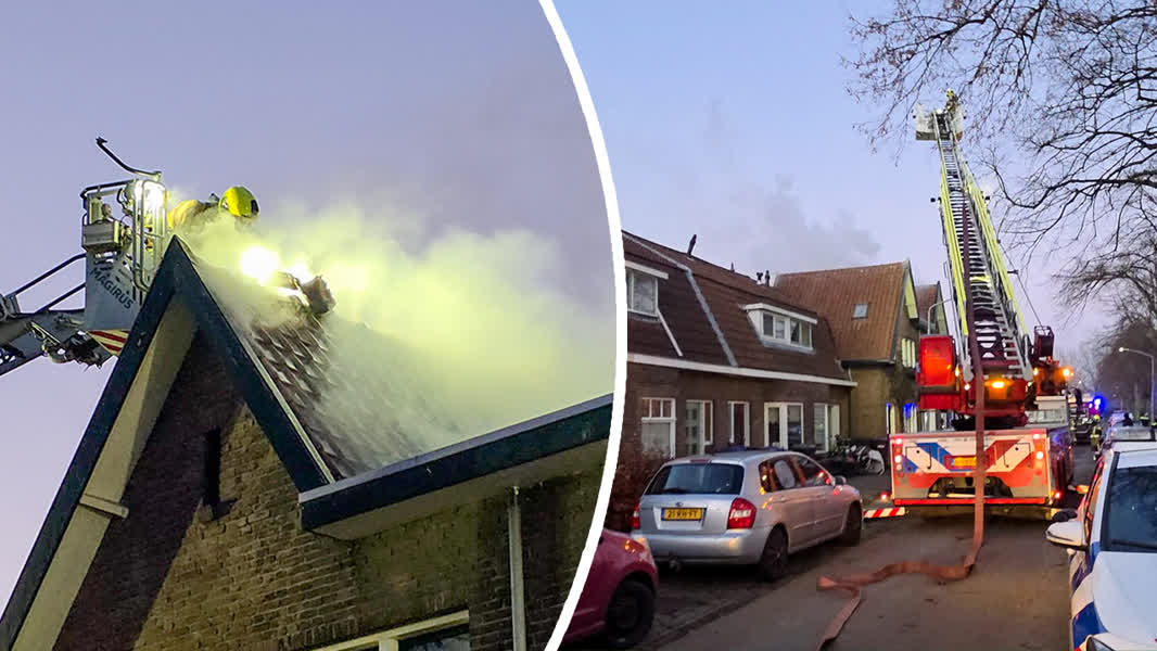 Brandweerlieden hebben twee uur nodig om de situatie onder controle te krijgen. Daarbij is een groot deel van het plafond en een muur gesloopt, is goed te zien vanaf de slaapkamer van de Dordtenaar. Een groot deel van de bovenverdieping is zwartgeblakerd, zijn zeiknatte bed ligt vol roetdeeltjes en overal liggen dakpannen.