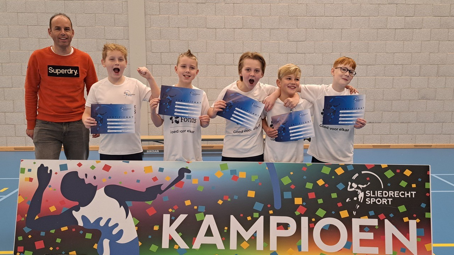 Zaterdag stond er een spannende wedstrijd voor de boys van Sliedrecht Sport CMV 5 team 5 in de agenda; ze zouden alleen bij winst van alle sets deze dag kampioen worden. En spannend werd het! In de derde set moest er teruggekomen worden van een achterstand, maar met koelbloedig spel werd de set met 25-23 binnengehaald. Door in de vierde set goed te blijven serveren werd ook deze set gewonnen en zijn ze niet meer in te halen door de nummer 2 in de poule en dus: kampioen!