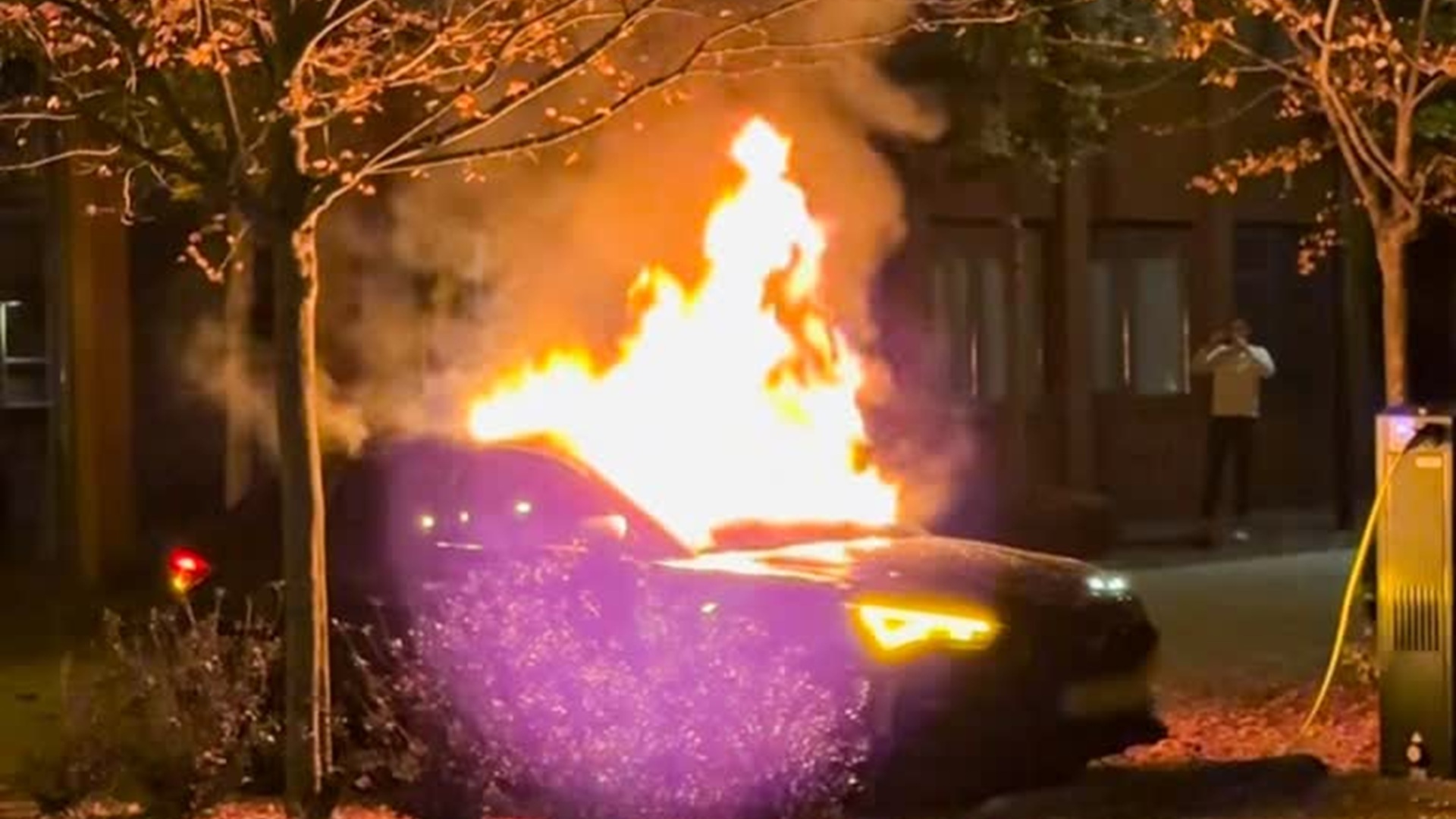 Het voertuig stond nog aan de laadpaal toen de vlammen uit de ramen sloegen. Een woordvoerder van de politie laat weten er getuigenissen zijn opgehaald die sterk wijzen op brandstichting.