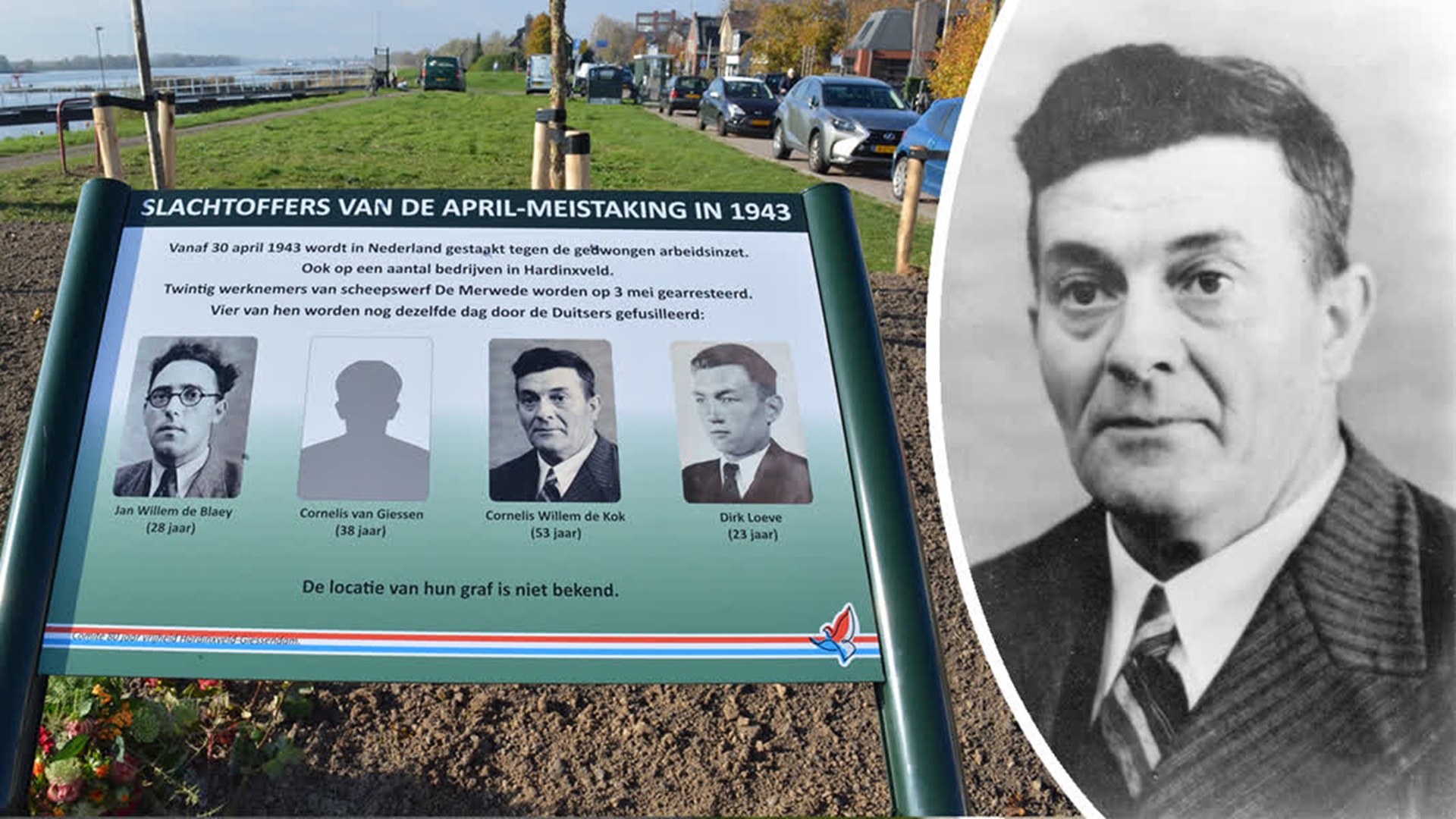 SLIEDRECHT / H’VELD-G’DAM – Een bijzondere gelegenheid in Hardinxveld-Giessendam afgelopen weekend. Bij scheepswerf De Merwede zijn een herdenkingsbord en vier bomen onthuld voor Sliedrechter Cornelis Willem de Kok en drie van zijn collega’s. Het viertal werd in 1943 door de Duitse bezetter gefusilleerd als reactie op de april-meistaking. Ook zal er in de gemeente Sliedrecht een struikelsteen worden geplaatst ter nagedachtenis aan De Kok.