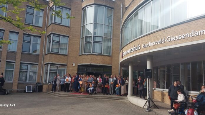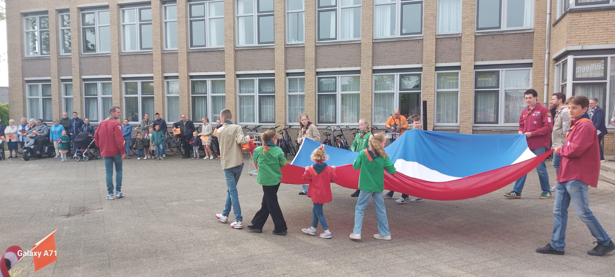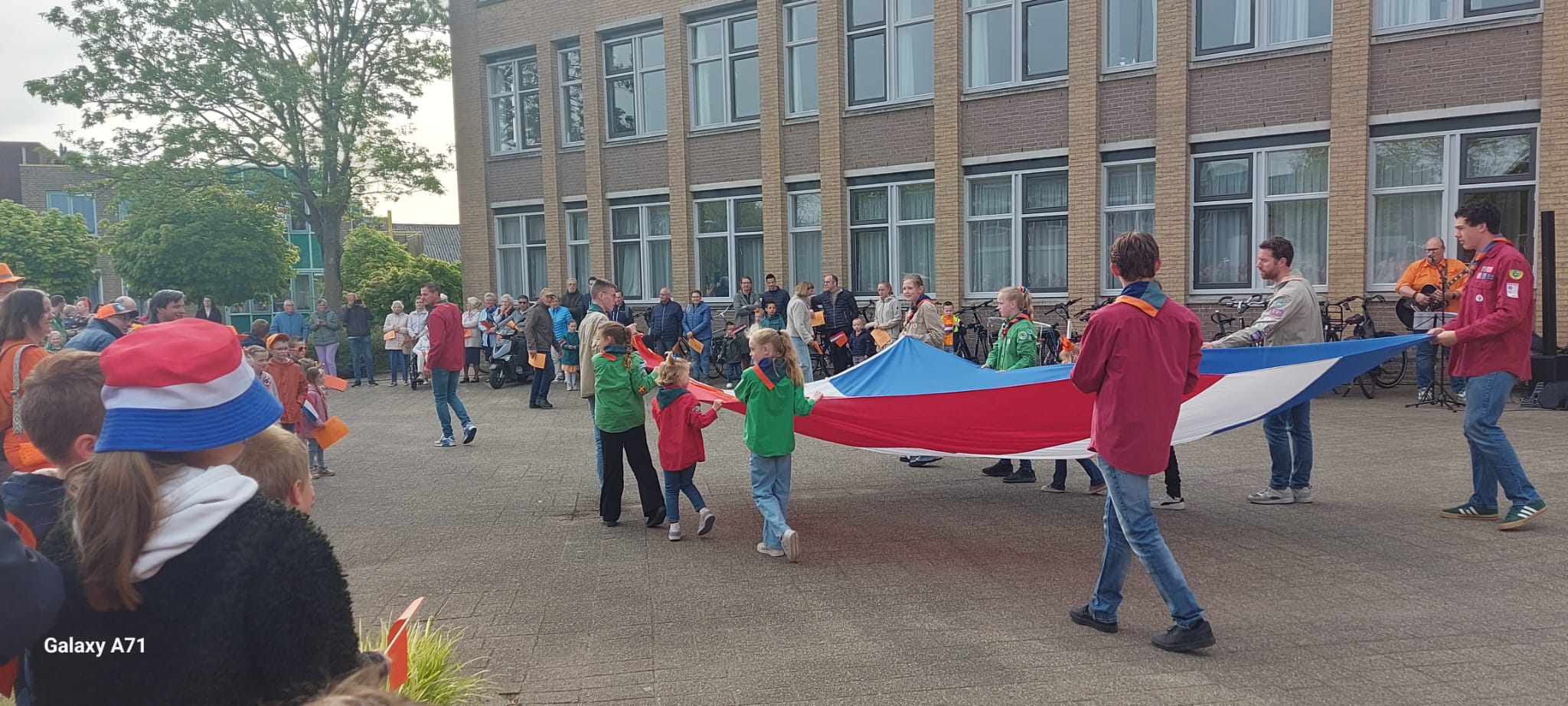 H’VELD-G’DAM – Ook in Hardinxveld-Giessendam waren er veel mensen op de been tijdens Koningsdag 2026. Na de toespraak door de voorzitter van de Oranjevereniging werd de vlag het plein op gebracht door de leden van de scouting. Hierna volgende het samen zingen van een blok liederen.
