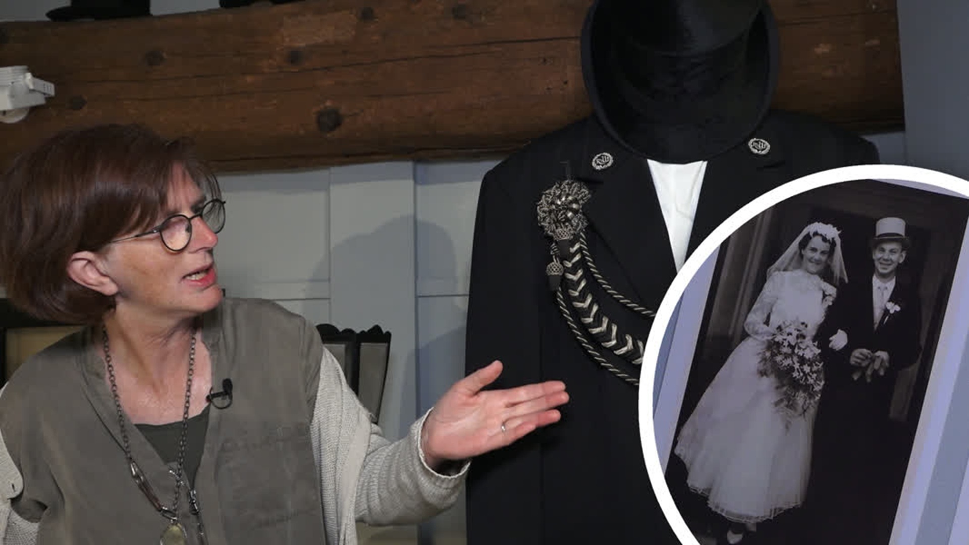 In het trouwgedeelte is te zien hoe de bruiloft zich door de jaren heen ontwikkelde. Vroeger trouwden mensen vaak in het zwart, later werd wit de standaardkleur. Rondom de vitrines staan trouwjurken, sluiers en accessoires uit de eerste helft van de vorige eeuw. Ook zijn er meer dan honderd trouwfoto’s te bekijken.