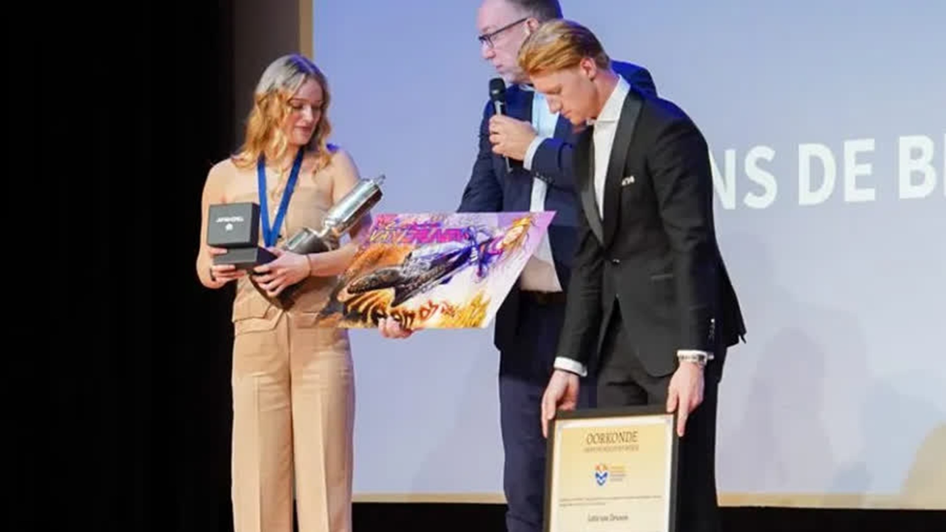 ‘Het voelt als een enorme eer, dat kan ik zeker zeggen’, aldus de 18-jarige Van Drunen. ‘Ik sta hier toch maar, het is heel bijzonder en het betekent heel veel voor me. Ik heb uiteraard een roze prijzenkast, dus daar komt ‘ie mooi bij te staan’.