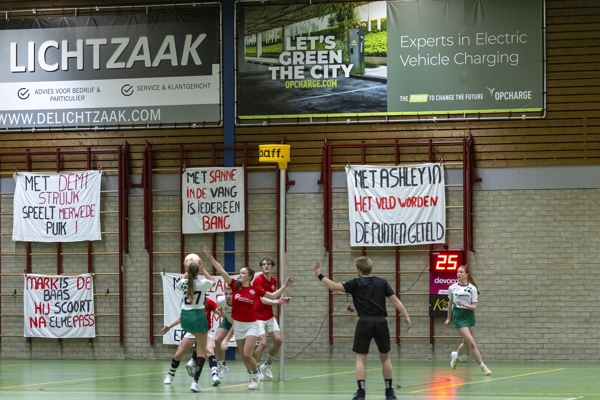 Ook na rust bleef het spelbeeld onveranderd. De ploeg hield de druk hoog, gaf weinig weg en bleef zelf eenvoudig tot goede kansen komen. Het verschil werd geen moment kleiner dan negen doelpunten. In de slotfase was er ruimte voor wissels en maakten meerdere jonge spelers hun minuten. Hoogtepunt was het eerste competitiedoelpunt van Tim, die koelbloedig afrondde.