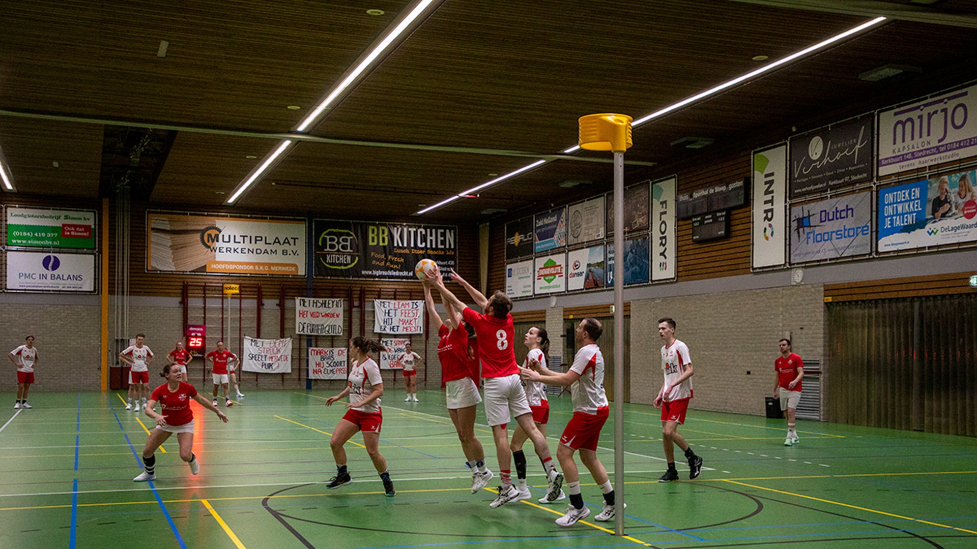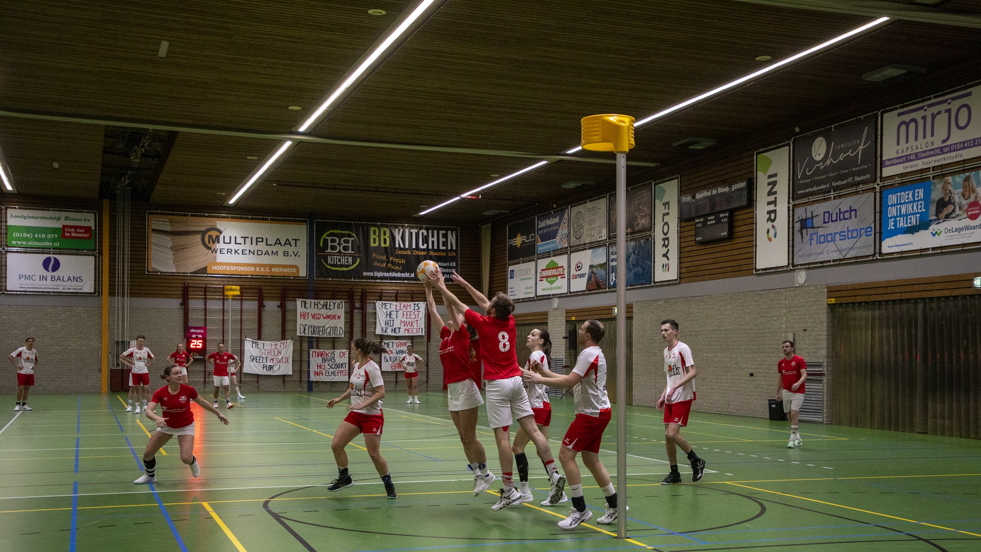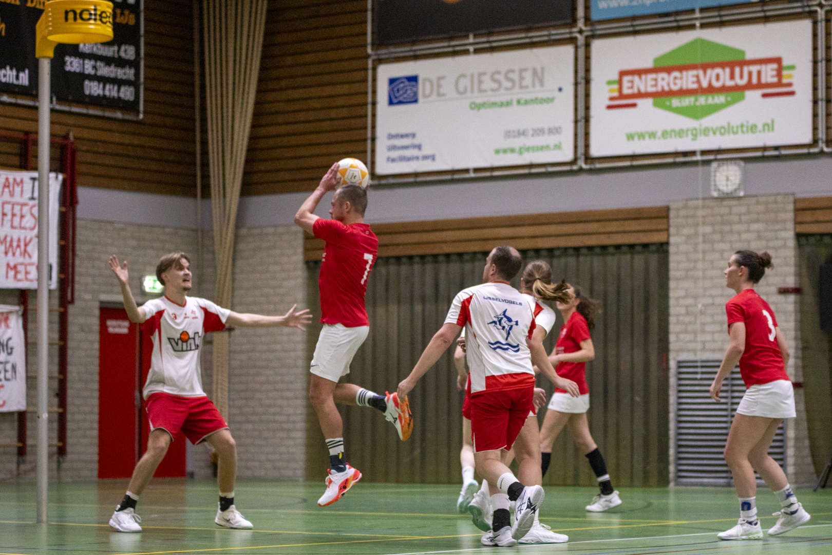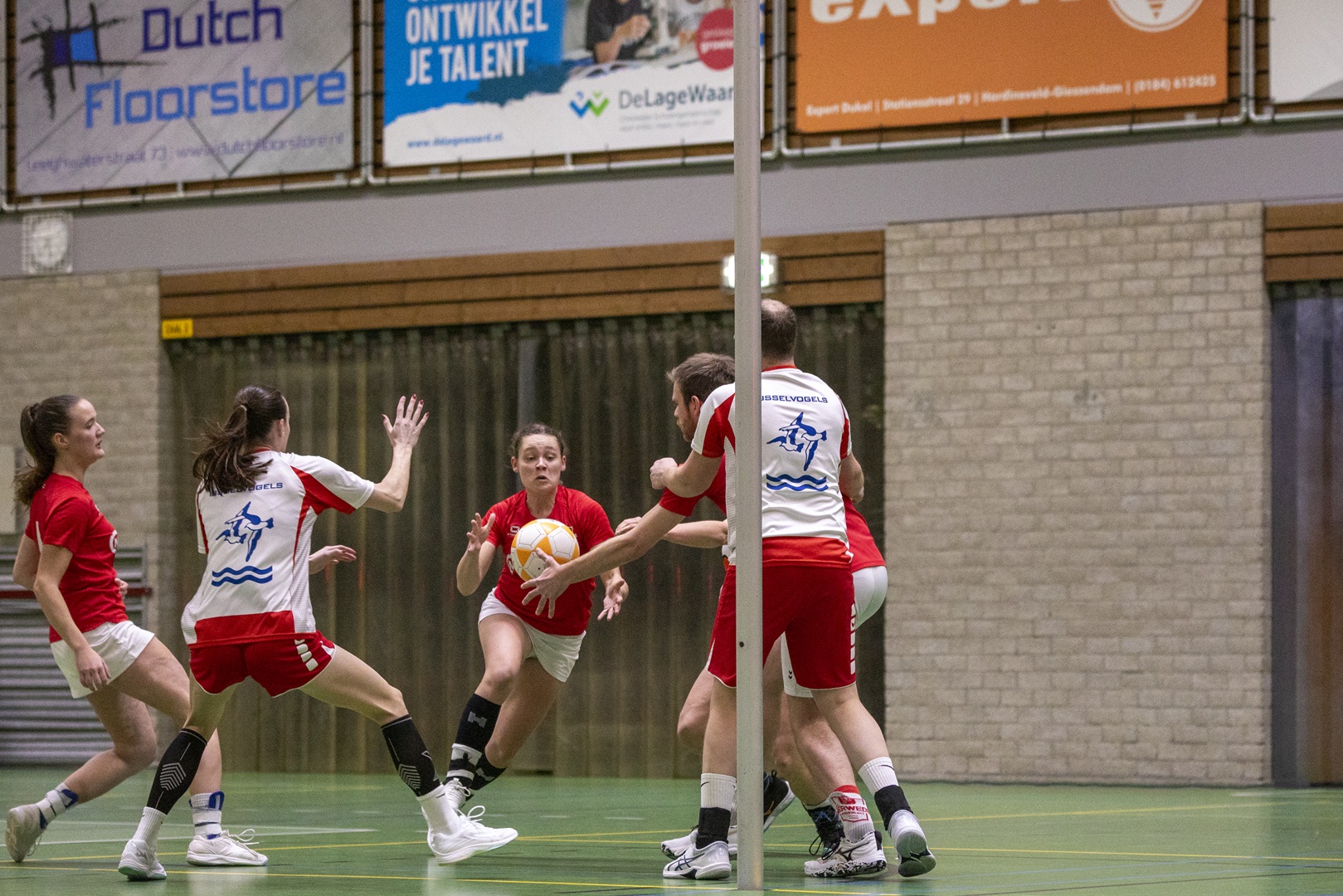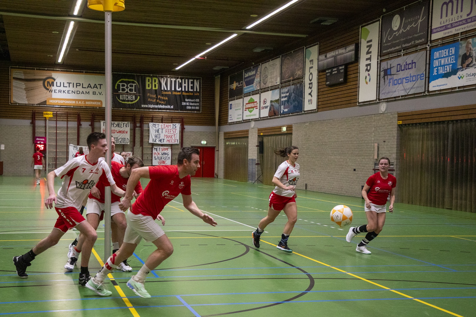 SLIEDRECHT – De wedstrijd begon uitstekend voor Merwede/Multiplaat. Al snel stond de 1-0 op het bord, wat zorgde voor een goede start in een wedstrijd waarvan vooraf al duidelijk was dat IJsselvogels tot het einde zou blijven strijden. Het werd een gelijk opgaande eerste helft met doelpunten over en weer. Dankzij zes verschillende doelpuntenmakers ging de thuisploeg met een nipte 8-7 voorsprong de rust in.