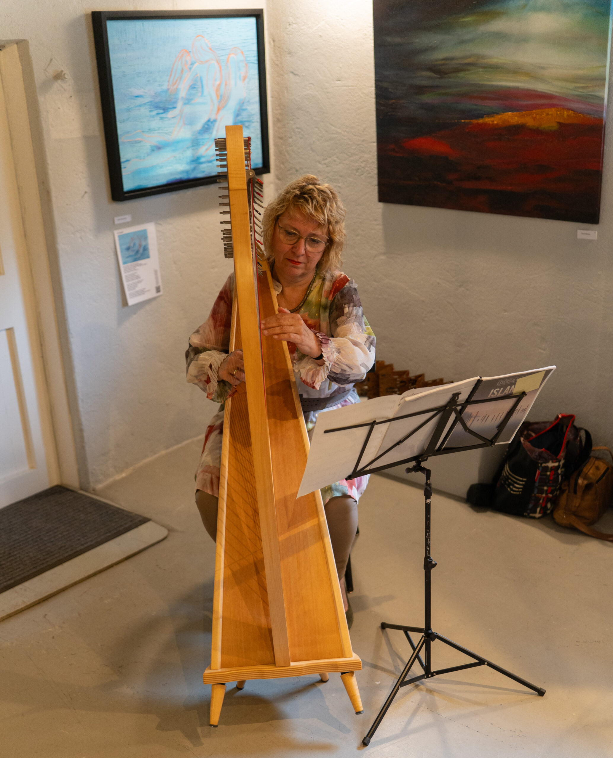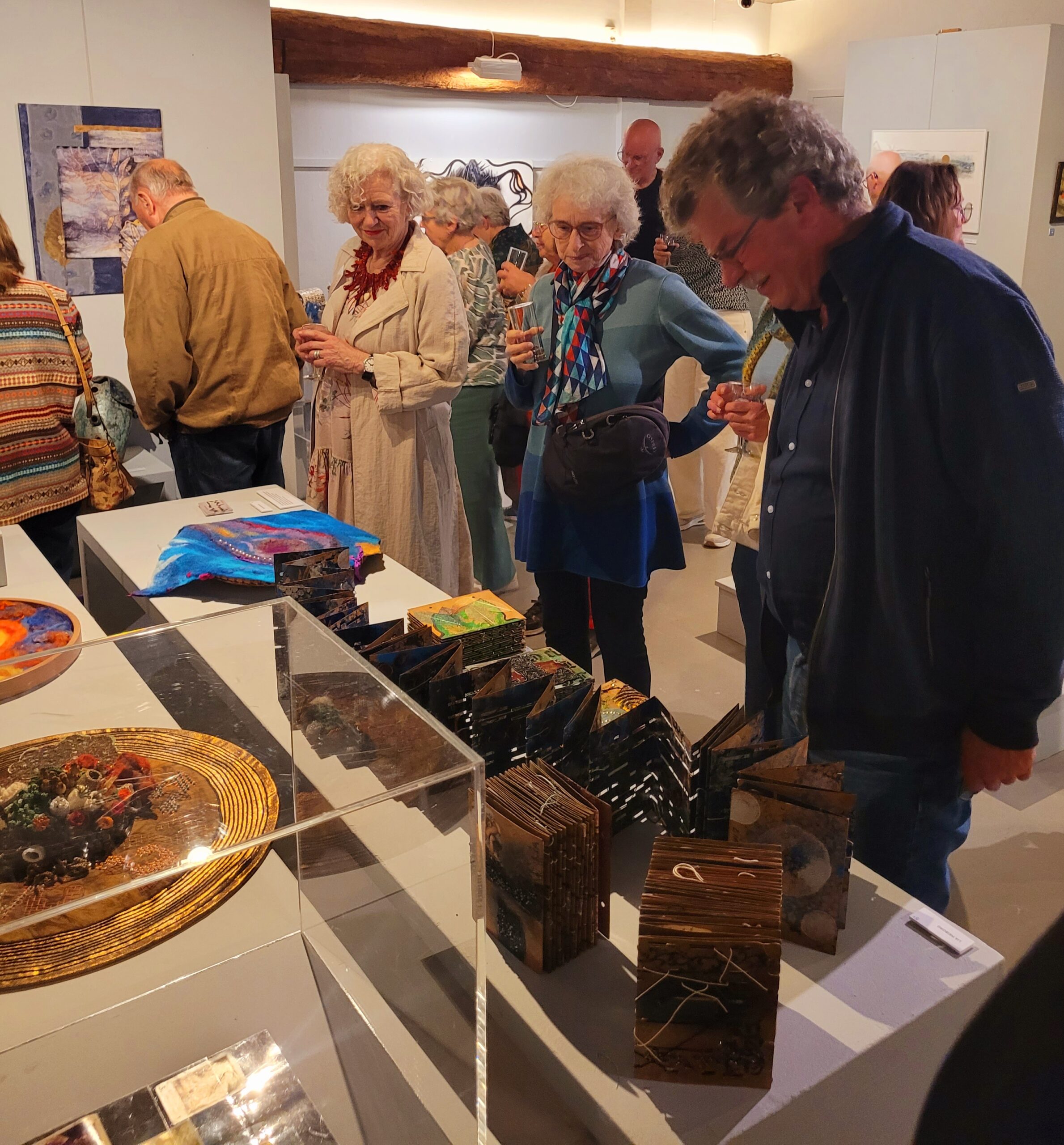 ‘De vorige expositie trok in twee maanden tijd ruim 1500 bezoekers’, vertelt museumdirecteur Koos van Veen in zijn openingswoord. ‘Voor deze expositie zijn onze verwachtingen ook weer hoog’. Na het openingswoord volgde een optreden met piano en zang door Janine den Toom en Alida Blokland. Hierna konden de bezoekers onder het genot van een hapje en een drankje de expositie bezichtigen. Een van de bezoekers vertelt: ‘We hebben een boekje met informatie over de achtergrond van de kunstwerken erbij gepakt. Dat is heel interessant om te lezen’. Het harpspel van Harriette Katsman zorgde voor een fijne sfeer in de expositieruimte.