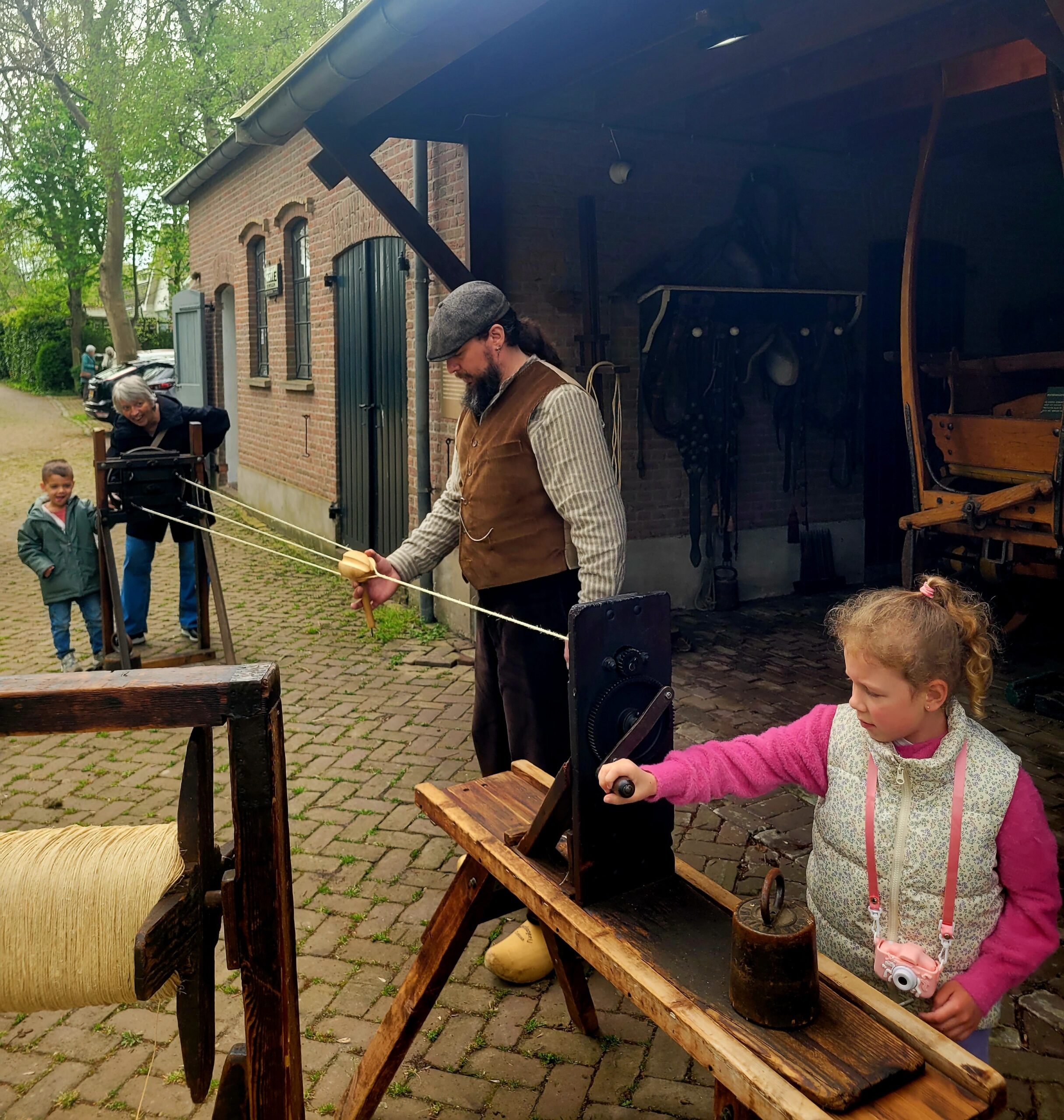Ook buiten viel er van alles te beleven. In de bijgebouwen van de museumtuin werden ambachtelijke demonstraties gegeven. Bezoekers zagen onder meer een smid, een touwslager en een hoepmaker aan het werk. De theetuin was ook voor het eerst dit seizoen weer open. Dat werd gevierd met speciale gebakjes voor de bezoekers.