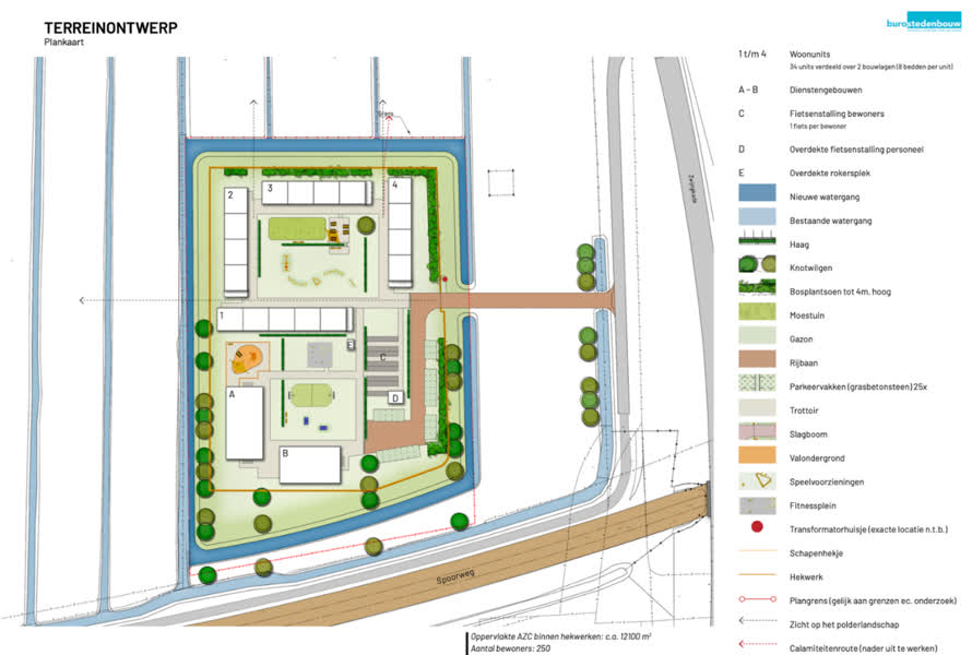 Op het terrein komen vier woonblokken met kantoorruimtes, speelterreinen en stallingen voor fietsen en auto’s, werd al eerder duidelijk toen het terreinontwerp werd gepresenteerd.