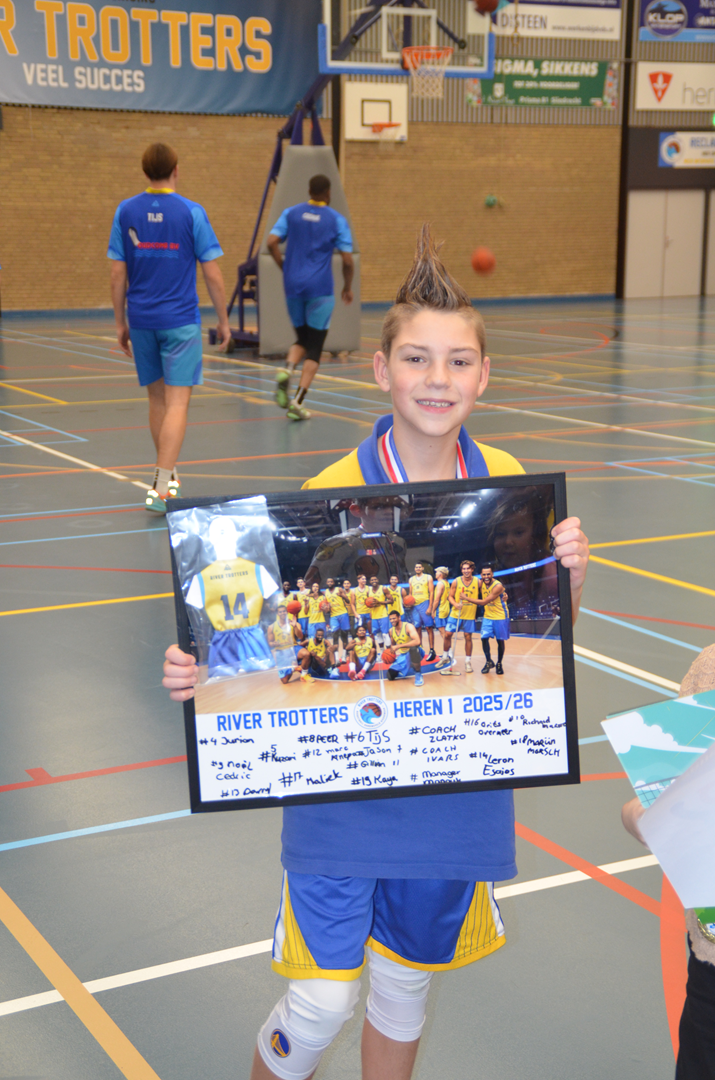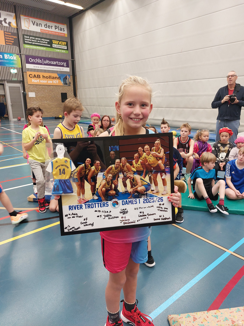 Zij kregen een toffe poster met handtekeningen van dames 1 en heren 1.