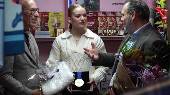 SLIEDRECHT – In het Australische Darwin wist Lotte van Drunen in september opnieuw wereldkampioen motorcross voor vrouwen te worden. Reden genoeg voor de gemeente Sliedrecht om Lotte vrijdag eens flink in het zonnetje te zetten.